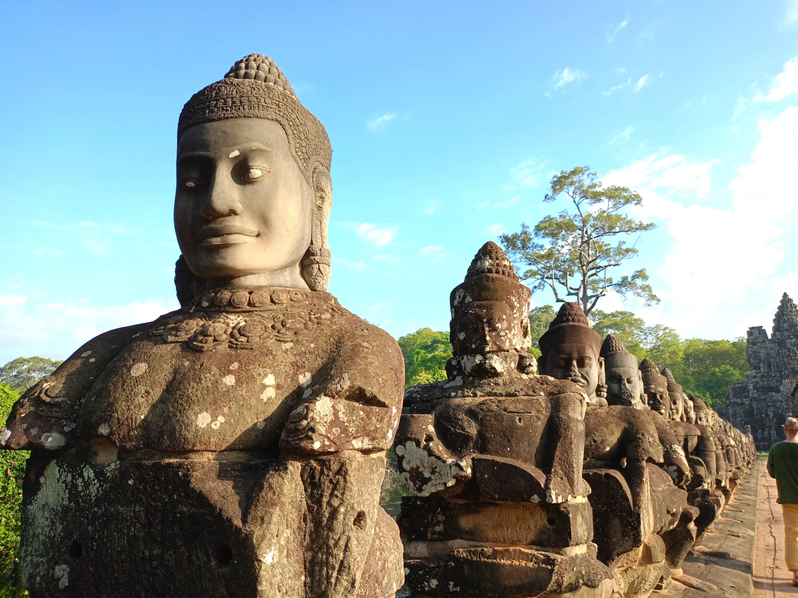 ![]() アンコール・トム | 【大きな街の遺跡】クメール語で、トムは大きいという意味を持ち、かつては大きな街でした。外部とは、南大門、北大門、西大門、死者の門、勝利の門の5つでつながっています。アンコール・トムの中にあるバイヨン、象のテラス、ライ王のテラスが観光スポットとして有名です。 |